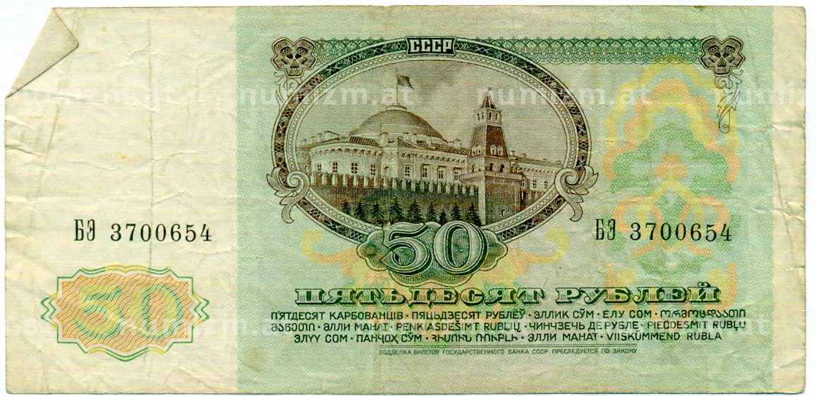 • Банкнота 50 рублей 1991 года (Артикул: T11-21298) — Фото №1 Банкнота 50 рублей 1991 года (Артикул: T11-21298) — Фото №2