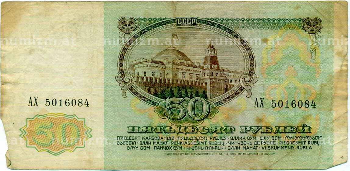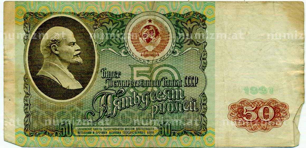 • Банкнота 50 рублей 1991 года (Артикул: T11-21300) — Фото №1 Банкнота 50 рублей 1991 года (Артикул: T11-21300) — Фото №2