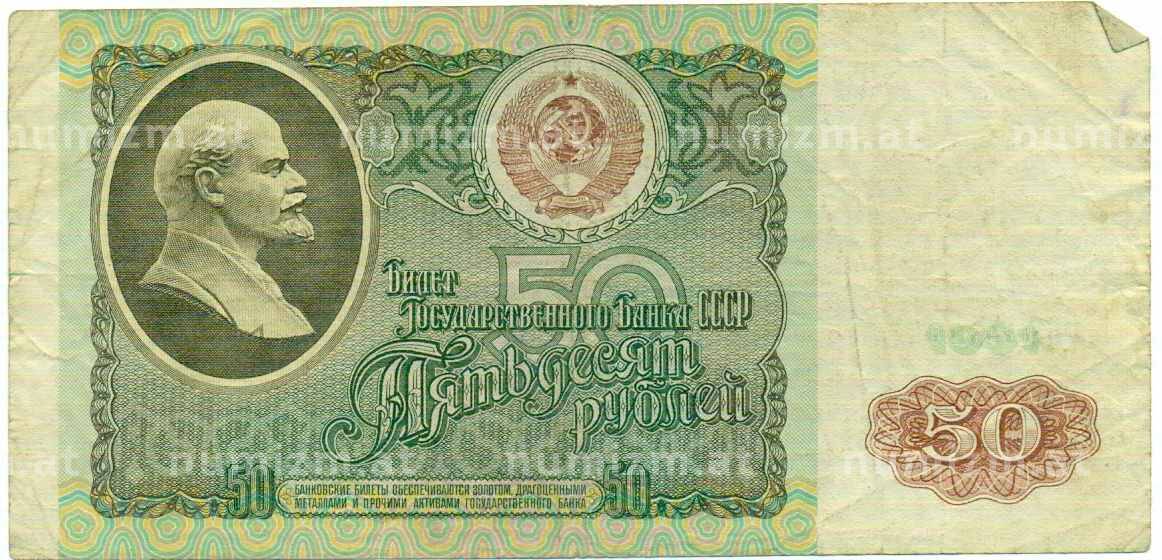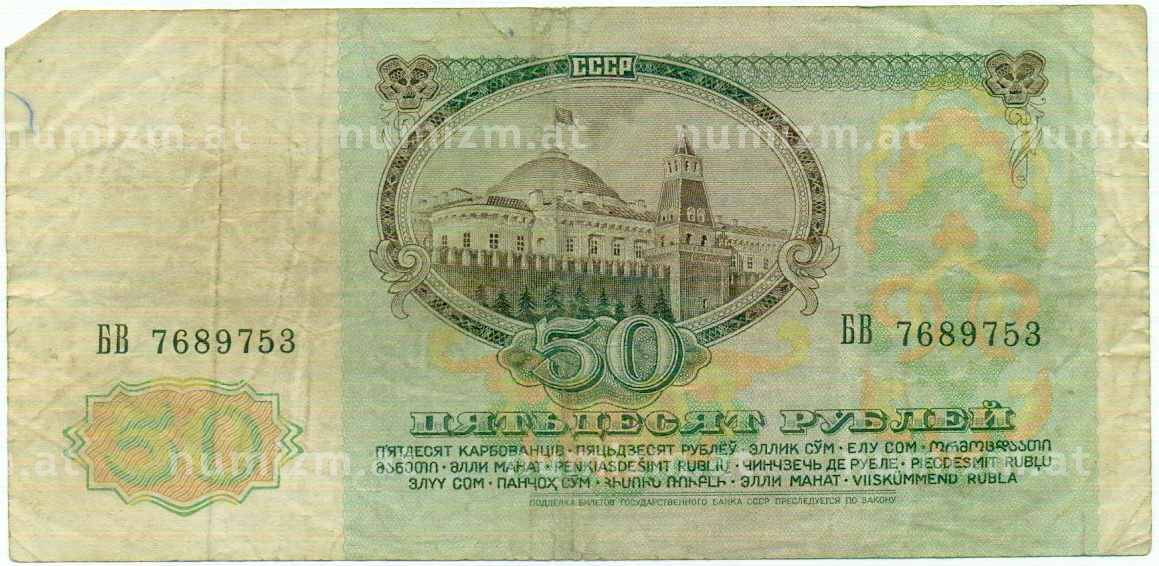 • Банкнота 50 рублей 1991 года (Артикул: T11-21307) — Фото №1 Банкнота 50 рублей 1991 года (Артикул: T11-21307) — Фото №2