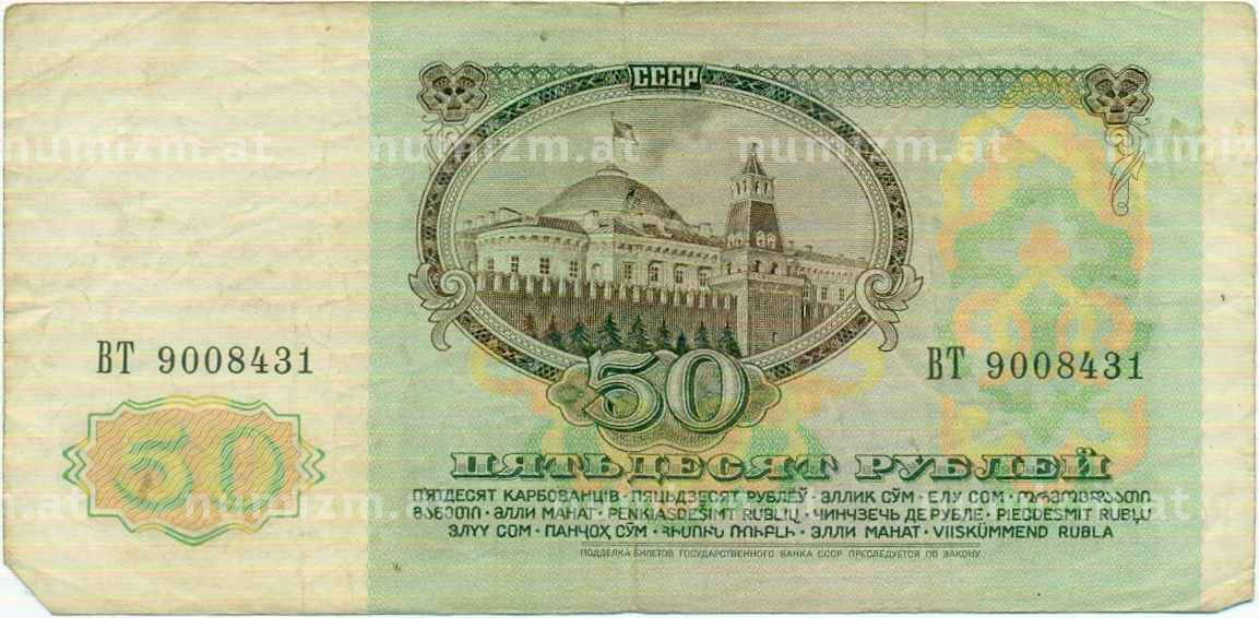 • Банкнота 50 рублей 1991 года (Артикул: T11-21308) — Фото №1 Банкнота 50 рублей 1991 года (Артикул: T11-21308) — Фото №2