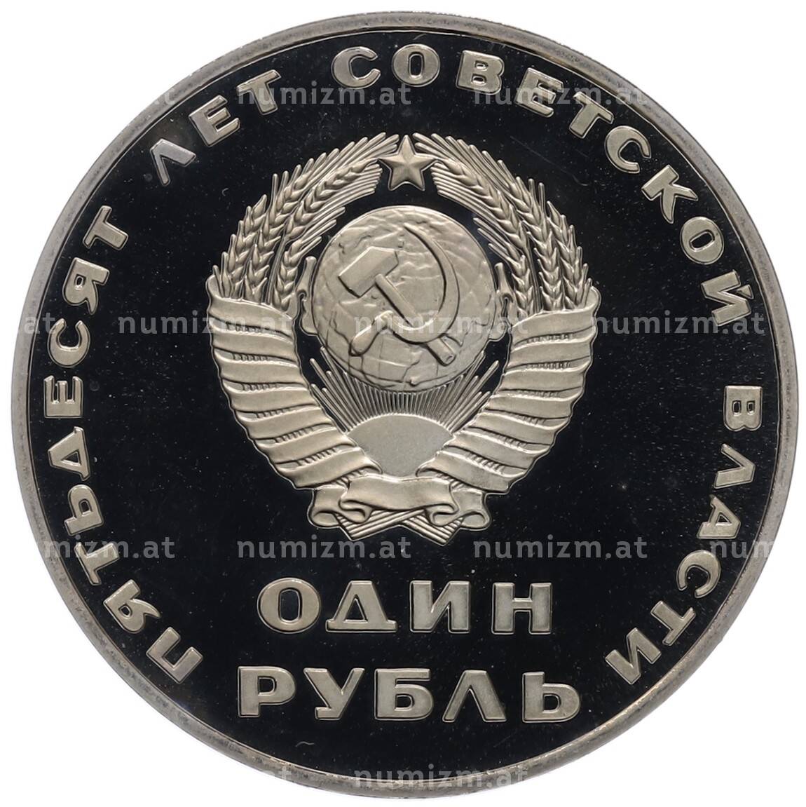 Купить 1 рубль 1967 года «50 лет Советской власти» (Новодел) по привлекательной цене можно в нашем интернет-магазине — Вам достаточно оформить заказ на сайте. Все монеты, представленные в каталоге, находятся в наличии на нашем складе.