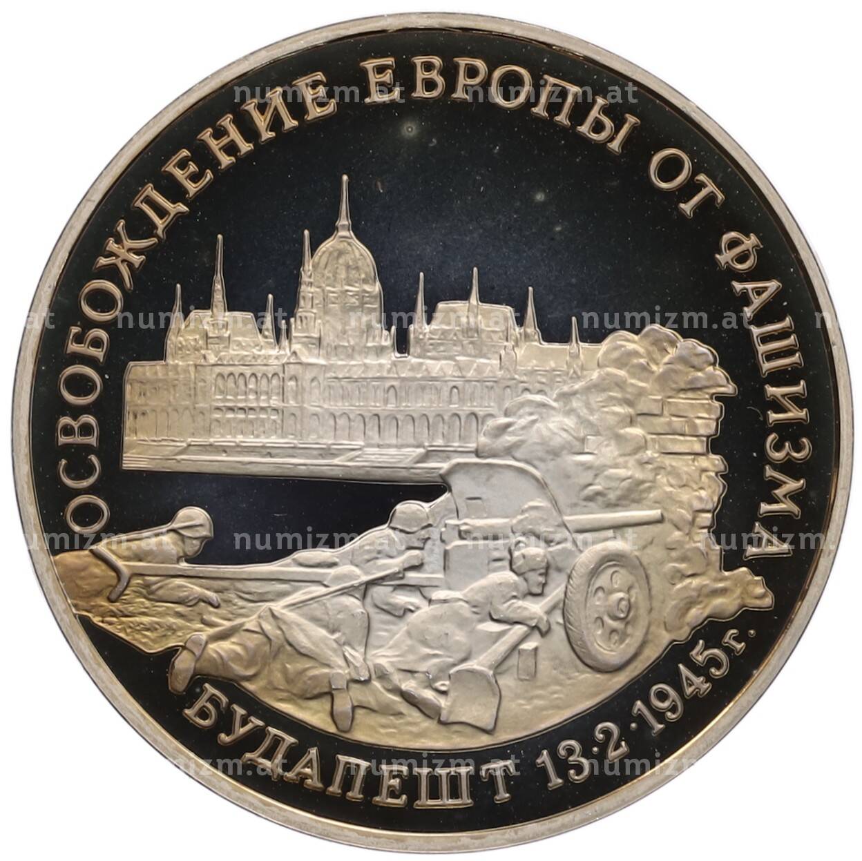 Купить 3 рубля 1995 года ММД «Освобождение Европы от фашизма — Будапешт» по привлекательной цене можно в нашем интернет-магазине — Вам достаточно оформить заказ на сайте. Все монеты, представленные в каталоге, находятся в наличии на нашем складе.