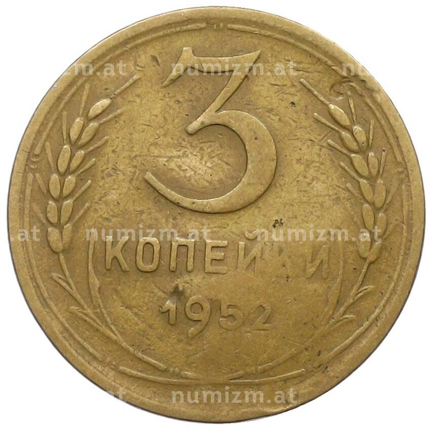Купить 3 копейки 1952 года по привлекательной цене можно в нашем интернет-магазине — Вам достаточно оформить заказ на сайте. Все монеты, представленные в каталоге, находятся в наличии на нашем складе.