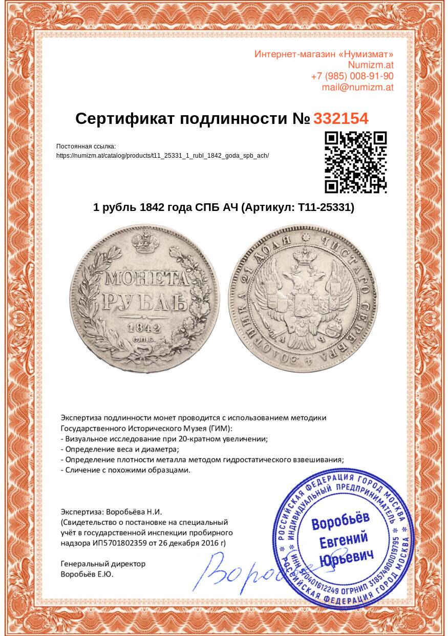 Купить 1 рубль 1842 года СПБ АЧ по привлекательной цене можно в нашем интернет-магазине — Вам достаточно оформить заказ на сайте. Все монеты, представленные в каталоге, находятся в наличии на нашем складе.
