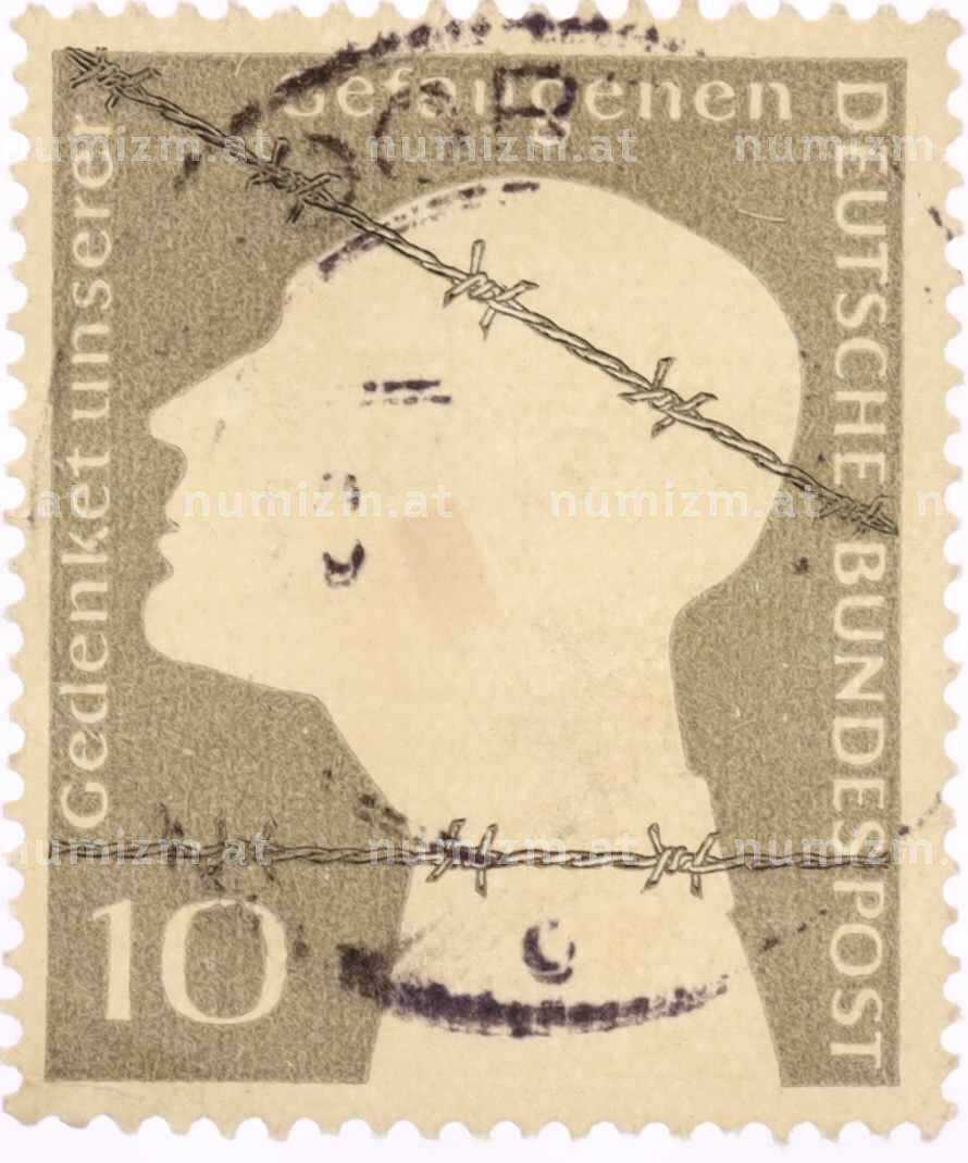 Почтовая марка 10 пфеннигов 1953 года Западная Германия (ФРГ) «Немецкие военнопленные — Заключенный за колючей проволокой» (Артикул: T11-26038): подробные характеристики, качественные фотографии в высоком разрешении, низкая цена.