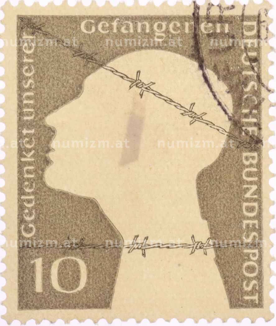 Купить Почтовая марка 10 пфеннигов 1953 года Западная Германия (ФРГ) «Немецкие военнопленные — Заключенный за колючей проволокой» по привлекательной цене можно в нашем интернет-магазине — Вам достаточно оформить заказ на сайте. Все монеты, представленные в каталоге, находятся в наличии на нашем складе.