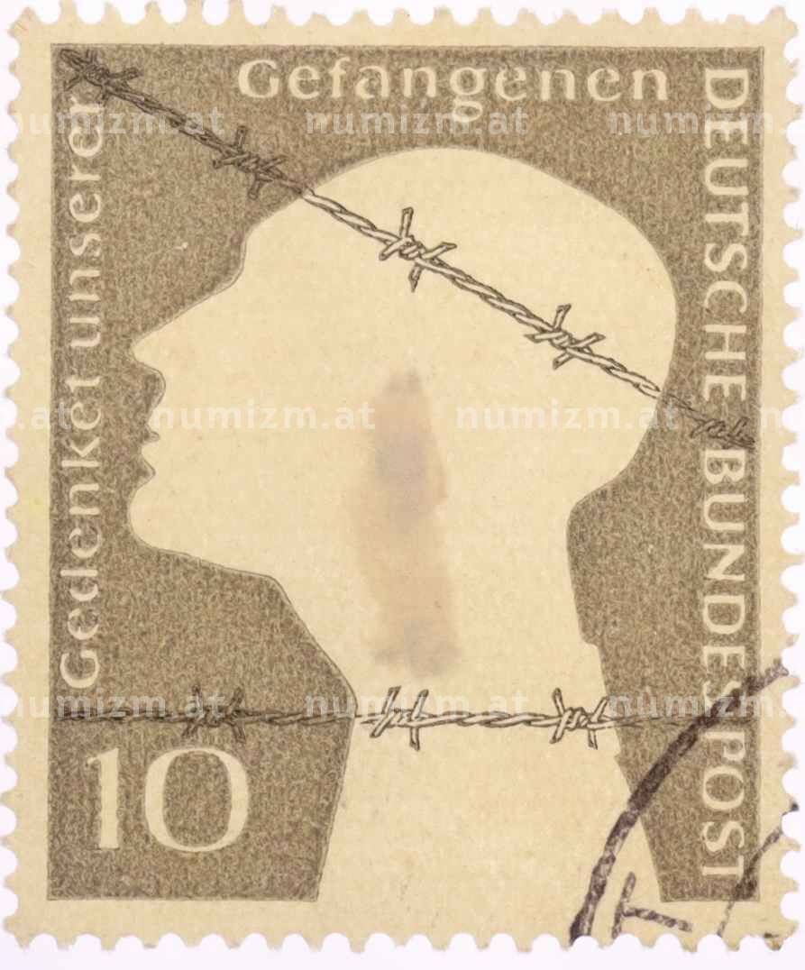 Почтовая марка 10 пфеннигов 1953 года Западная Германия (ФРГ) «Немецкие военнопленные — Заключенный за колючей проволокой» (Артикул: T11-26042): подробные характеристики, качественные фотографии в высоком разрешении, низкая цена.