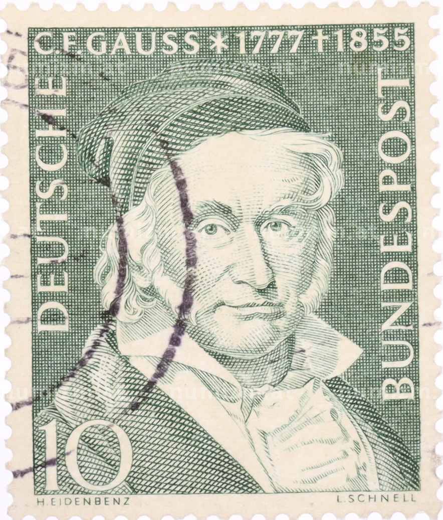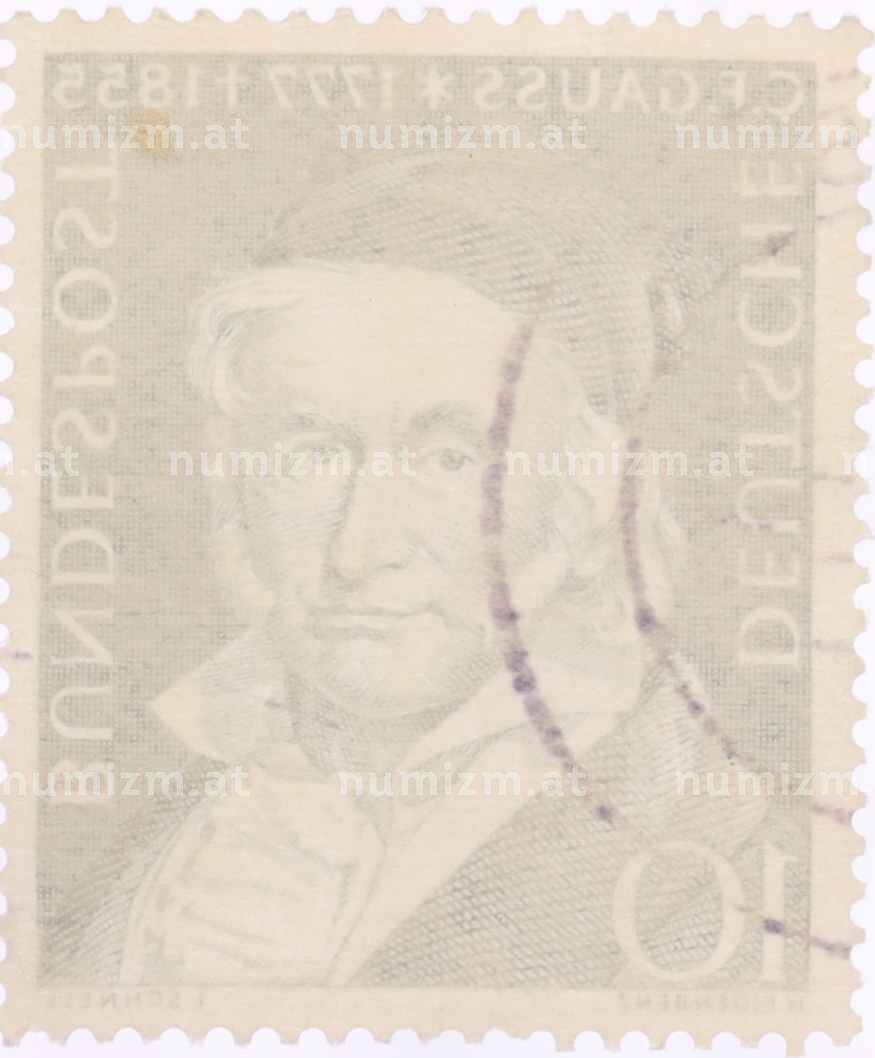 Почтовая марка 10 пфеннигов 1955 года Западная Германия (ФРГ) «Карл Фридрих Гаусс» (Артикул: T11-26052): подробные характеристики, качественные фотографии в высоком разрешении, низкая цена.
