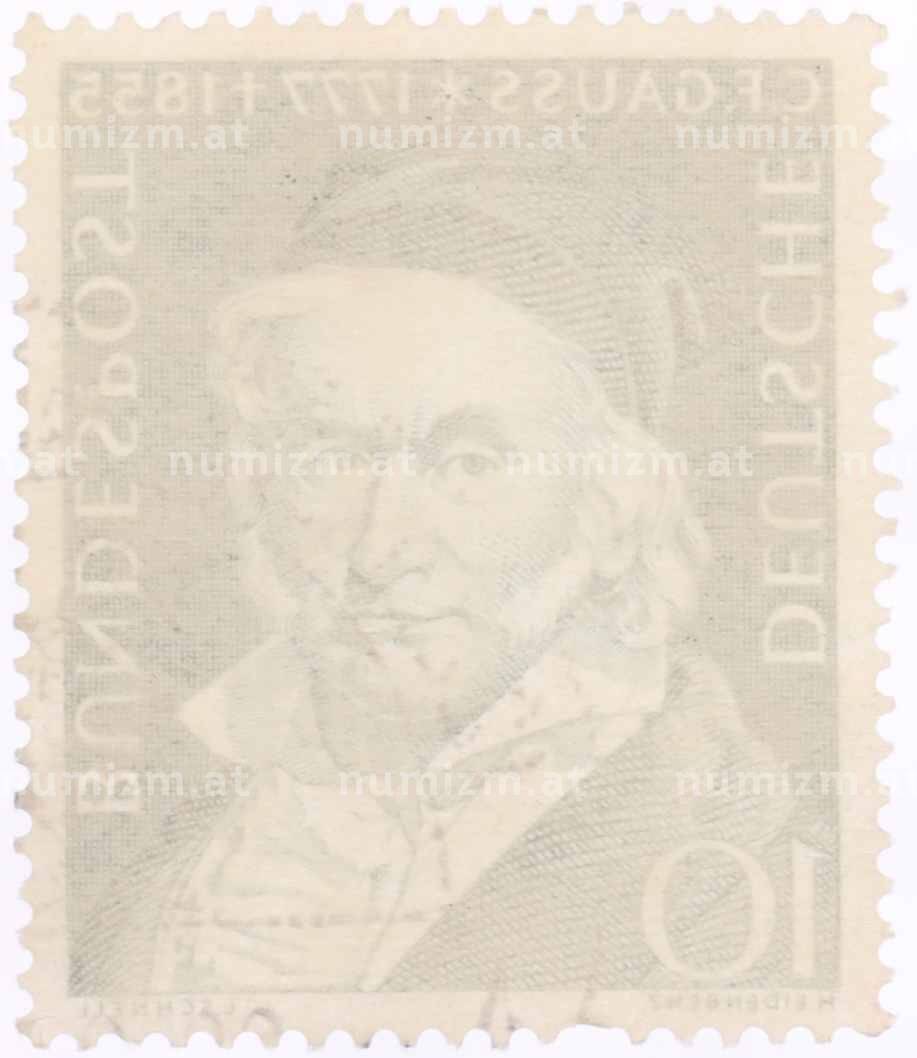 Почтовая марка 10 пфеннигов 1955 года Западная Германия (ФРГ) «Карл Фридрих Гаусс» (Артикул: T11-26055): подробные характеристики, качественные фотографии в высоком разрешении, низкая цена.