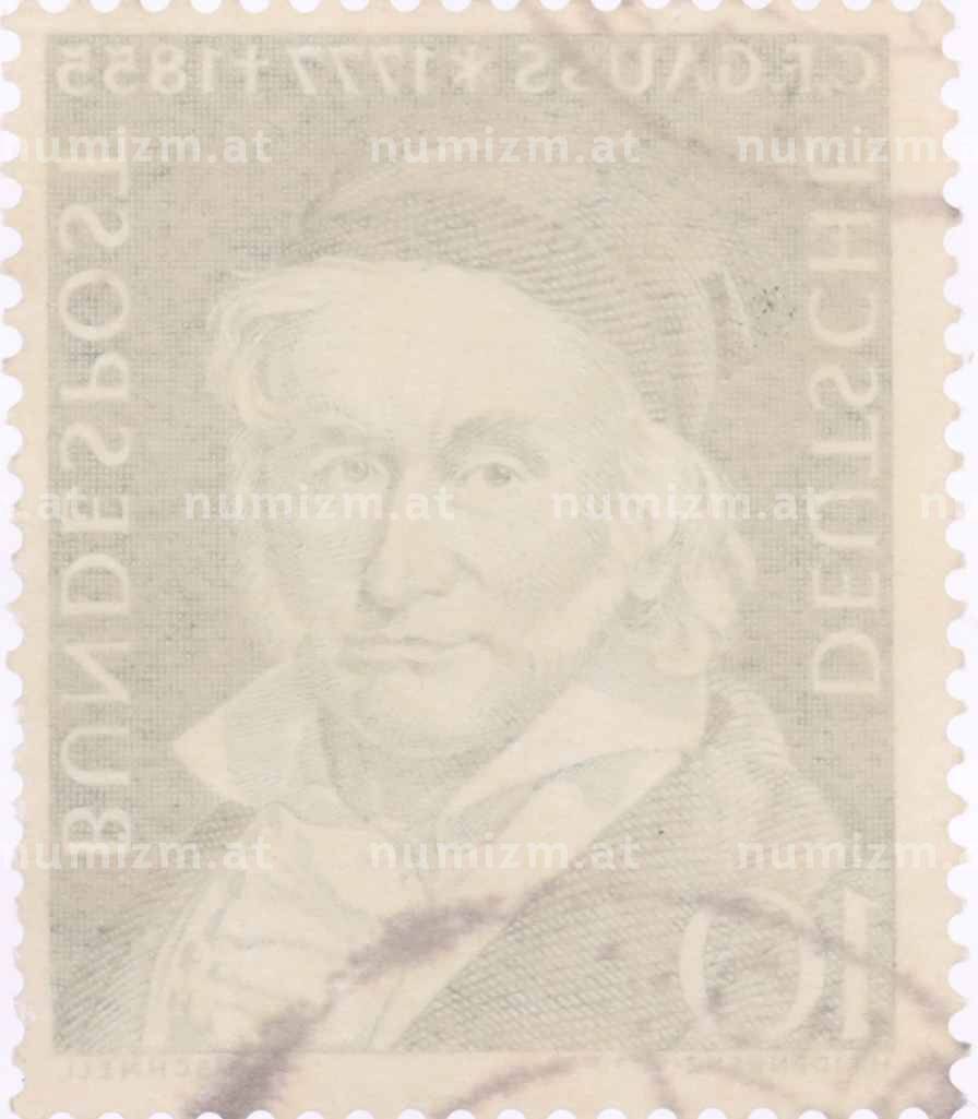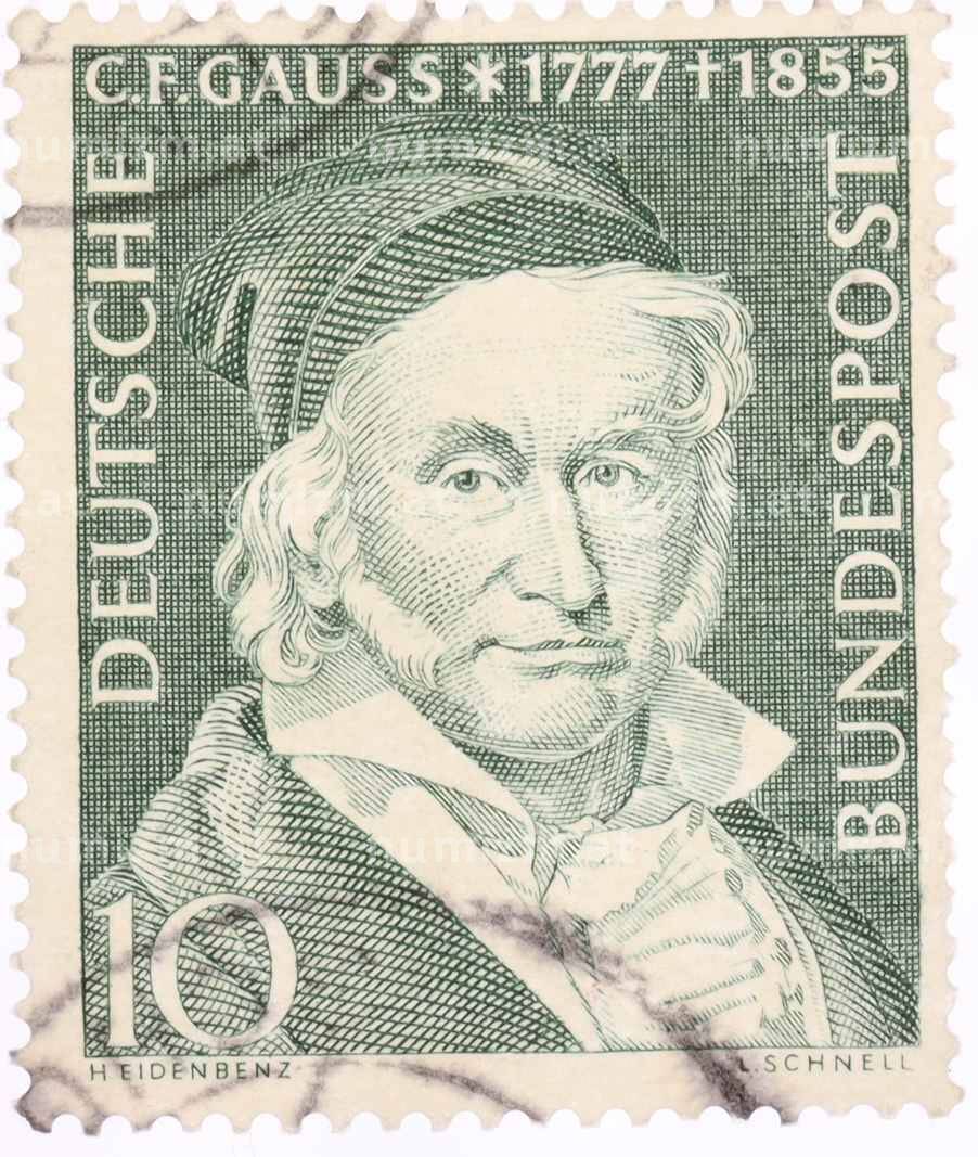 Почтовая марка 10 пфеннигов 1955 года Западная Германия (ФРГ) «Карл Фридрих Гаусс» (Артикул: T11-26056): подробные характеристики, качественные фотографии в высоком разрешении, низкая цена.
