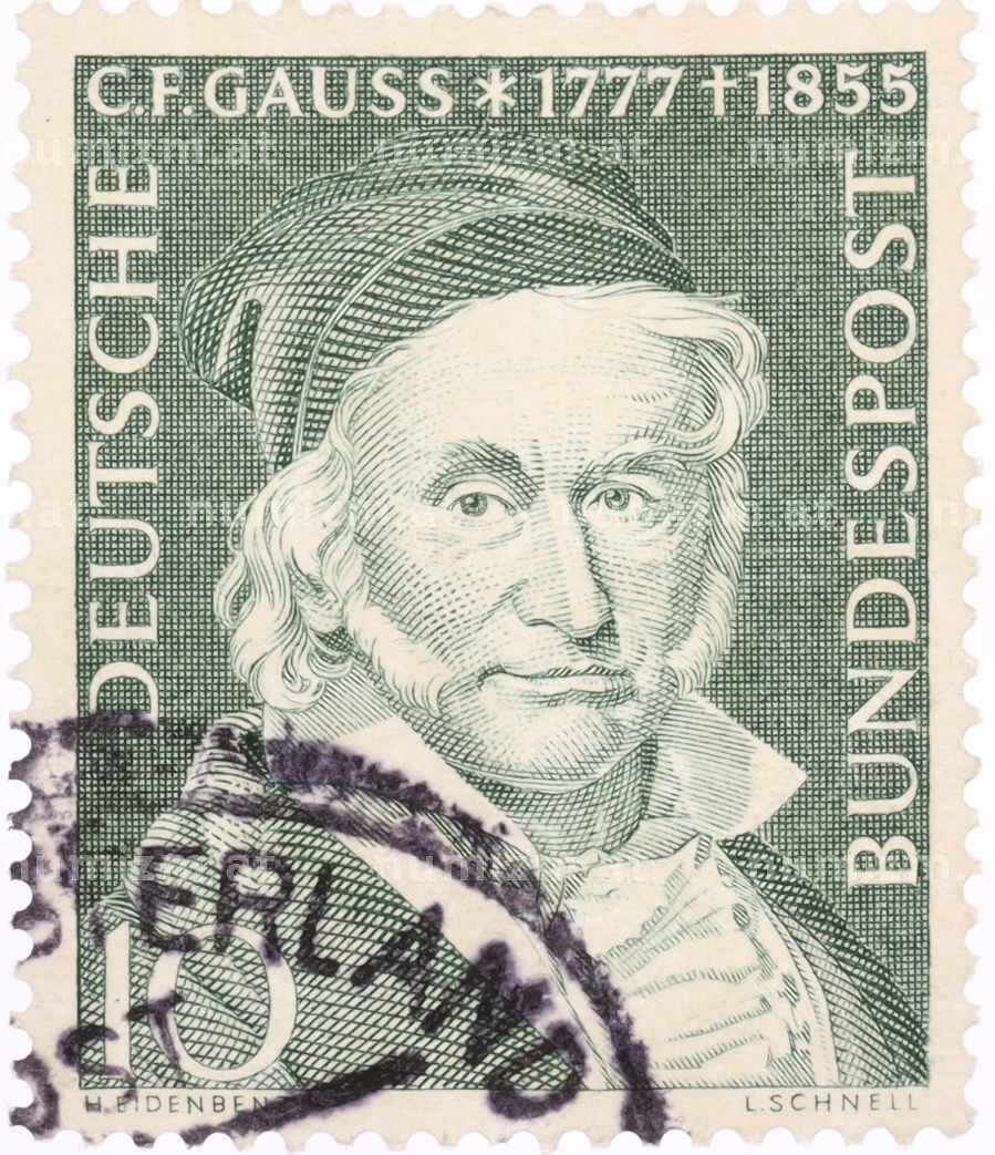 Почтовая марка 10 пфеннигов 1955 года Западная Германия (ФРГ) «Карл Фридрих Гаусс» (Артикул: T11-26059): подробные характеристики, качественные фотографии в высоком разрешении, низкая цена.