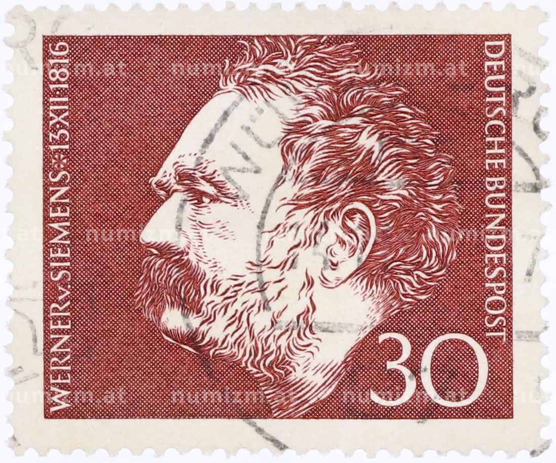 Почтовая марка 30 пфеннигов 1966 года Западная Германия (ФРГ) «150 лет со дня рождения Вернера фон Сименса» (Артикул: T11-26086): подробные характеристики, качественные фотографии в высоком разрешении, низкая цена.