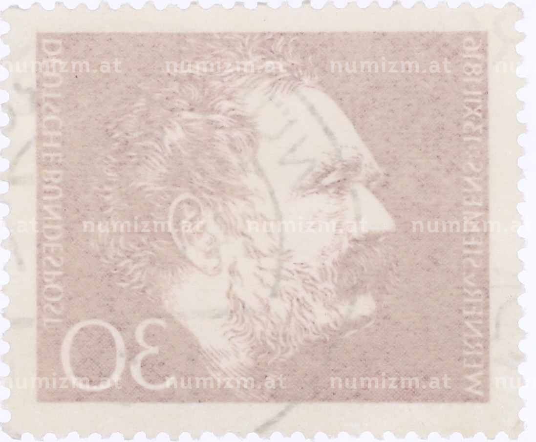 Почтовая марка 30 пфеннигов 1966 года Западная Германия (ФРГ) «150 лет со дня рождения Вернера фон Сименса» [Артикул: T11-26086]