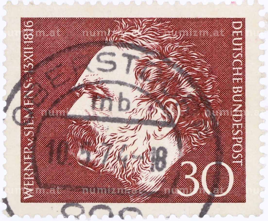 Почтовая марка 30 пфеннигов 1966 года Западная Германия (ФРГ) «150 лет со дня рождения Вернера фон Сименса» (Артикул: T11-26088): подробные характеристики, качественные фотографии в высоком разрешении, низкая цена.