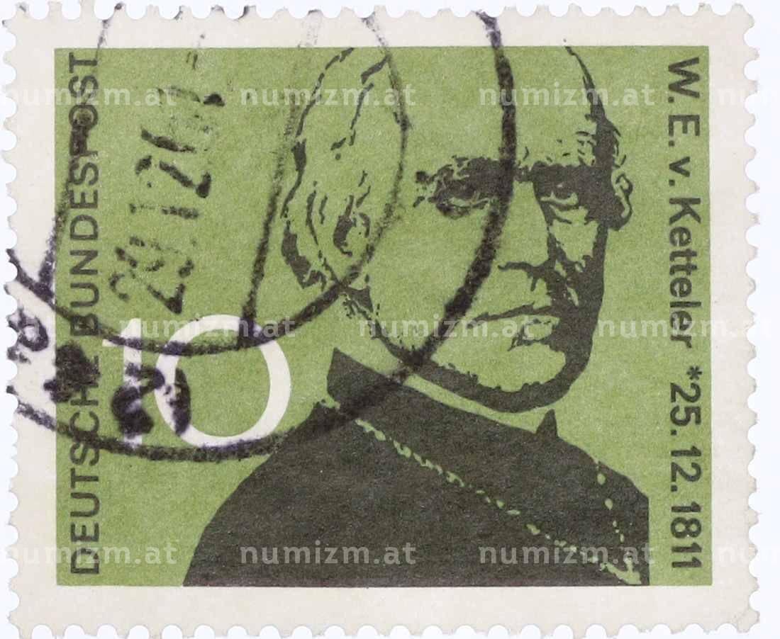 Купить Почтовая марка 10 пфеннигов 1961 года Западная Германия (ФРГ) «Барон Вильгельм Эммануил фон Кеттелер» по привлекательной цене можно в нашем интернет-магазине — Вам достаточно оформить заказ на сайте. Все монеты, представленные в каталоге, находятся в наличии на нашем складе.