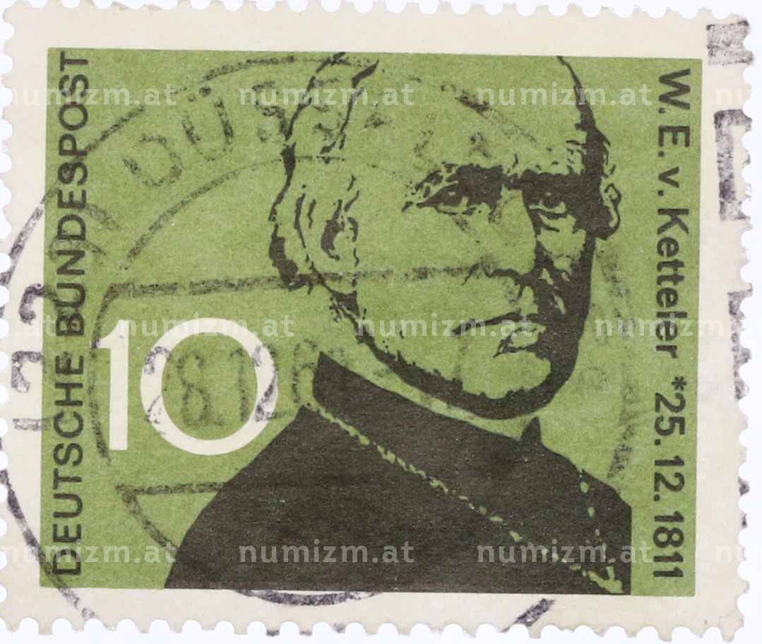 Почтовая марка 10 пфеннигов 1961 года Западная Германия (ФРГ) «Барон Вильгельм Эммануил фон Кеттелер» (Артикул: T11-26090): подробные характеристики, качественные фотографии в высоком разрешении, низкая цена.
