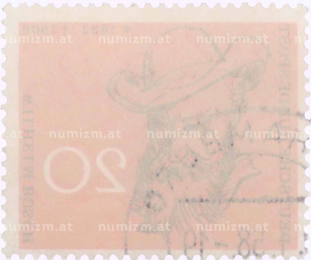 20.01.2025Интернет магазин «Нумизмат» предлагает приобрести Почтовая марка 20 пфеннигов 1958 года Западная Германия (ФРГ) «Вильгельм Буш».