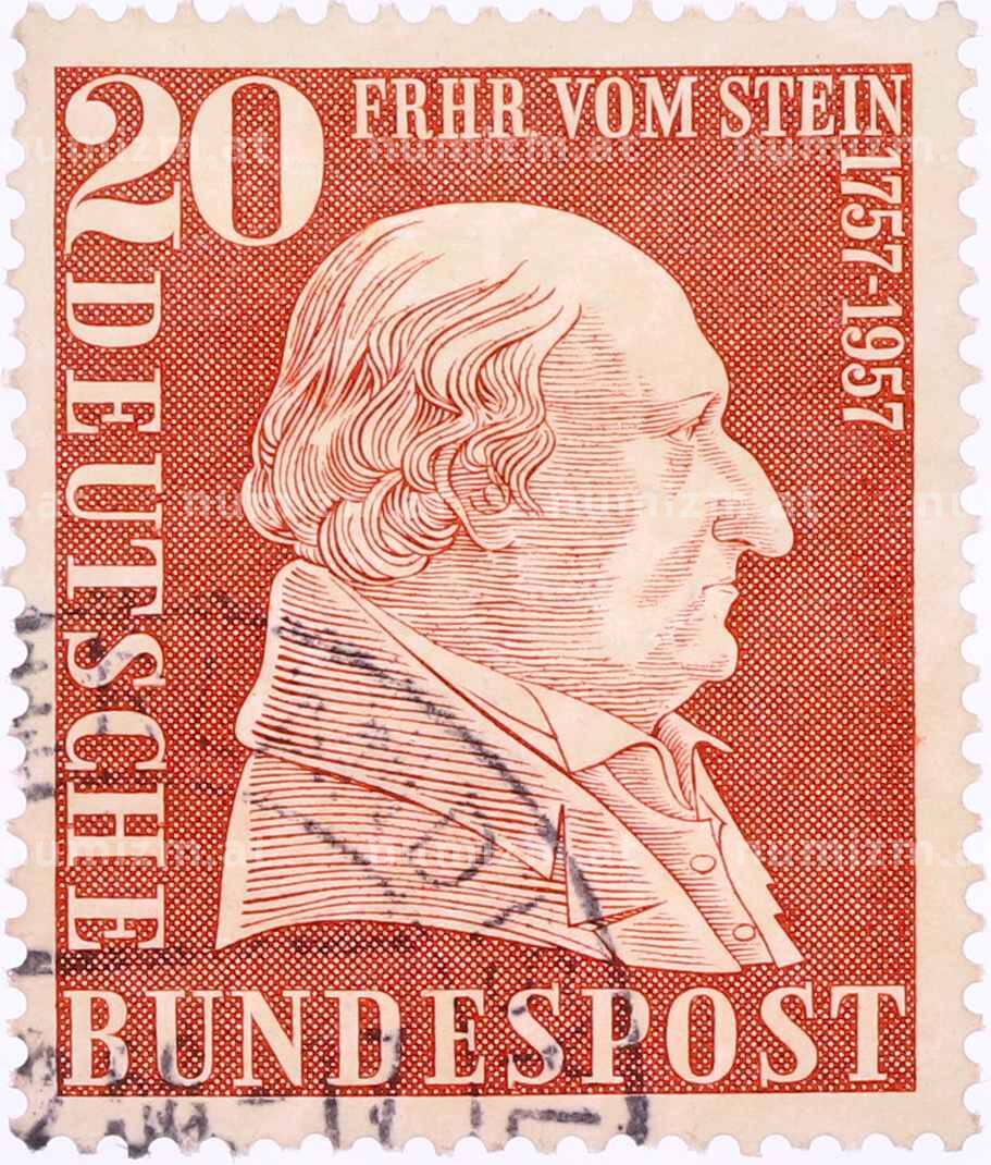 Купить Почтовая марка 20 пфеннигов 1957 года Западная Германия (ФРГ) «200-летие со дня рождения барона фон Штейна» по привлекательной цене можно в нашем интернет-магазине — Вам достаточно оформить заказ на сайте. Все монеты, представленные в каталоге, находятся в наличии на нашем складе.