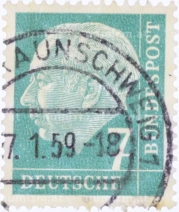 Почтовая марка 7 пфеннигов 1954 года Западная Германия (ФРГ) «Теодор Хойс» (Артикул: T11-26127): подробные характеристики, качественные фотографии в высоком разрешении, низкая цена.
