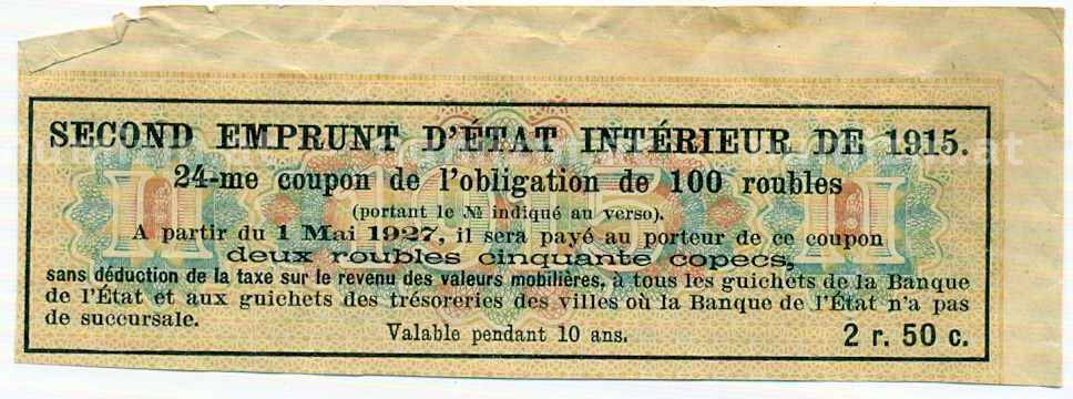 Купить Купон от облигации 100 рублей 1915 года «Второй внутренний государственный заем» по привлекательной цене можно в нашем интернет-магазине — Вам достаточно оформить заказ на сайте. Все монеты, представленные в каталоге, находятся в наличии на нашем складе.