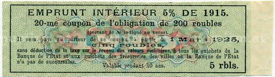 Купить Купон от облигации 200 рублей 1915 года «Внутренний заем» по привлекательной цене можно в нашем интернет-магазине — Вам достаточно оформить заказ на сайте. Все монеты, представленные в каталоге, находятся в наличии на нашем складе.