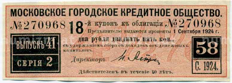 Купон от облигации 100 рублей 1915 года «Московское городское кредитное общество» (Артикул: T11-26913): подробные характеристики, качественные фотографии в высоком разрешении, низкая цена.