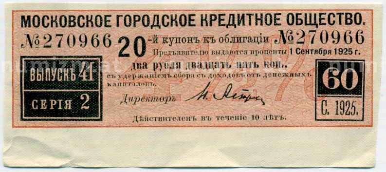 Купон от облигации 100 рублей 1915 года «Московское городское кредитное общество» (Артикул: T11-26917): подробные характеристики, качественные фотографии в высоком разрешении, низкая цена.