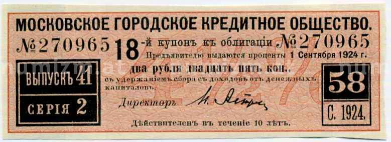 Купон от облигации 100 рублей 1915 года «Московское городское кредитное общество» (Артикул: T11-26922): подробные характеристики, качественные фотографии в высоком разрешении, низкая цена.