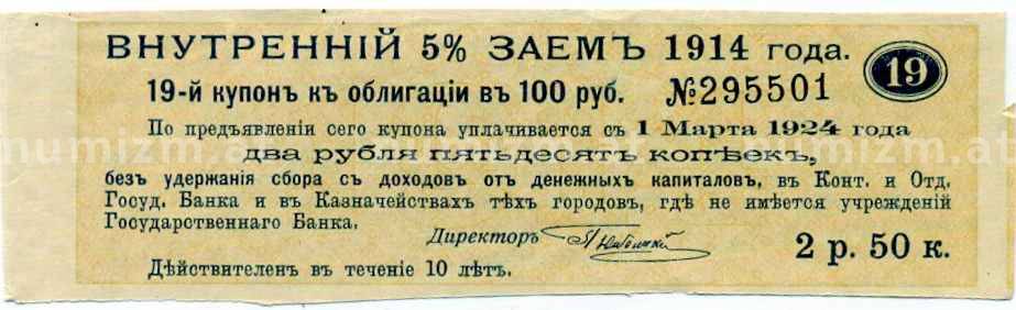Купон от облигации 100 рублей 1914 года «Внутренний заем» [Артикул: T11-27124]