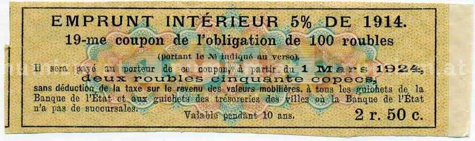 Купон от облигации 100 рублей 1914 года «Внутренний заем» (Артикул: T11-27124): подробные характеристики, качественные фотографии в высоком разрешении, низкая цена.