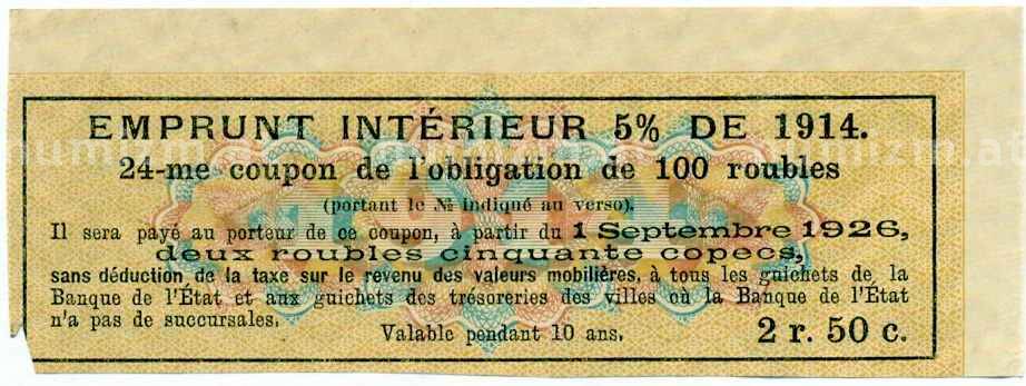 Купить Купон от облигации 100 рублей 1914 года «Внутренний заем» по привлекательной цене можно в нашем интернет-магазине — Вам достаточно оформить заказ на сайте. Все монеты, представленные в каталоге, находятся в наличии на нашем складе.