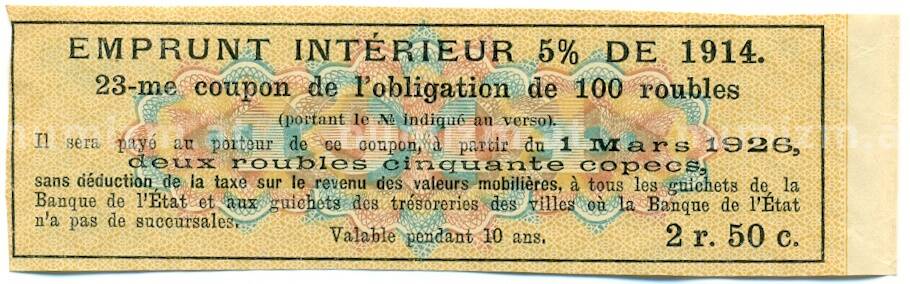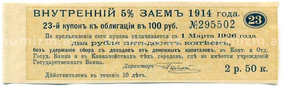 Купить Купон от облигации 100 рублей 1914 года «Внутренний заем» по привлекательной цене можно в нашем интернет-магазине — Вам достаточно оформить заказ на сайте. Все монеты, представленные в каталоге, находятся в наличии на нашем складе.