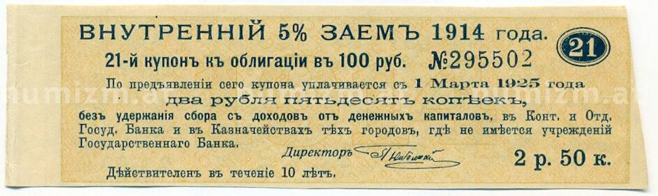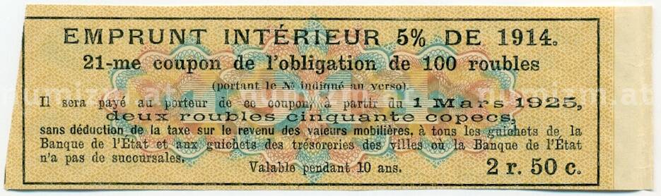Купить Купон от облигации 100 рублей 1914 года «Внутренний заем» по привлекательной цене можно в нашем интернет-магазине — Вам достаточно оформить заказ на сайте. Все монеты, представленные в каталоге, находятся в наличии на нашем складе.