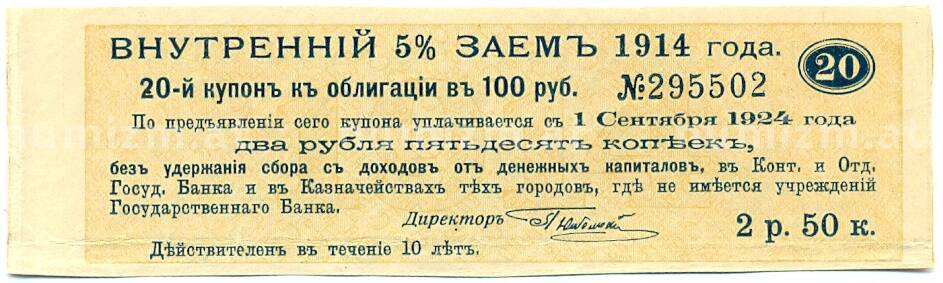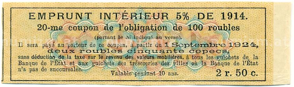 Купон от облигации 100 рублей 1914 года «Внутренний заем» (Артикул: T11-27713): подробные характеристики, качественные фотографии в высоком разрешении, низкая цена.