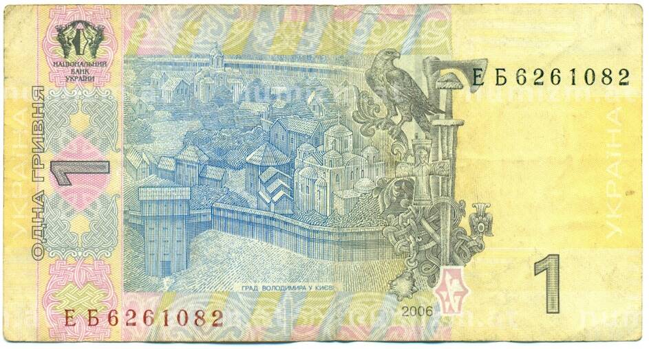 Банкнота 1 гривна 2006 года Украина (Артикул: T11-28628): подробные характеристики, качественные фотографии в высоком разрешении, низкая цена.