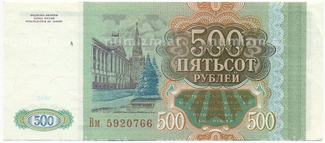 Банкнота 500 рублей 1993 года (Артикул: T11-28651): подробные характеристики, качественные фотографии в высоком разрешении, низкая цена.
