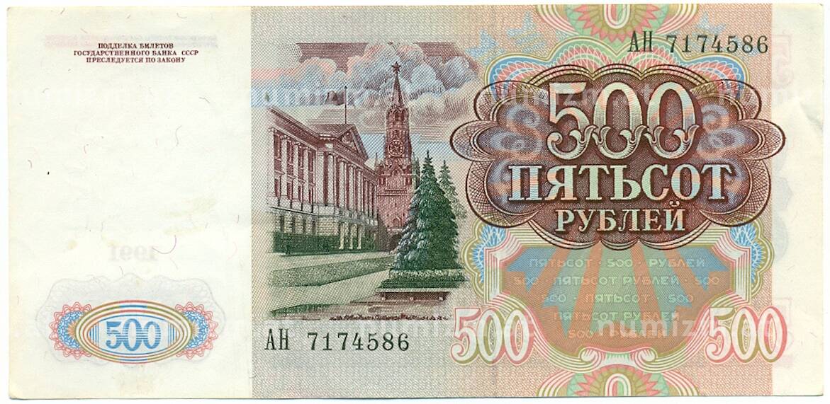 20.01.2025Интернет магазин «Нумизмат» предлагает приобрести 500 рублей 1991 года.