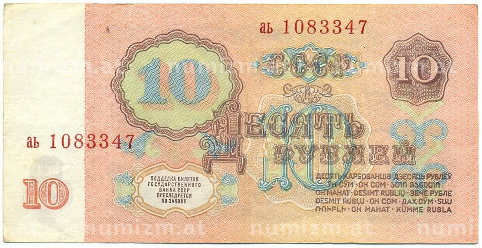 • Банкнота 10 рублей 1961 года (Артикул: T11-28669) — Фото №1 Банкнота 10 рублей 1961 года (Артикул: T11-28669) — Фото №2