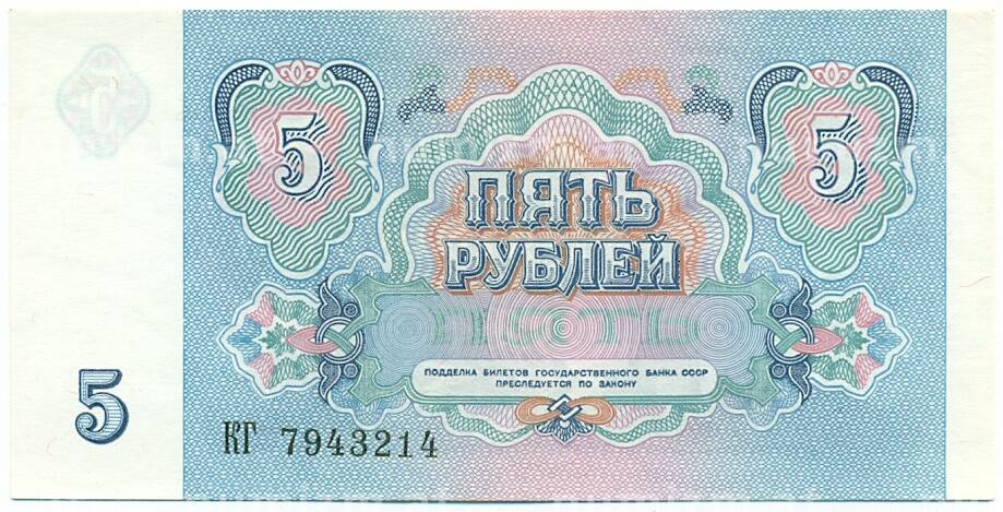 Банкнота 5 рублей 1991 года (Артикул: T11-28713): подробные характеристики, качественные фотографии в высоком разрешении, низкая цена.