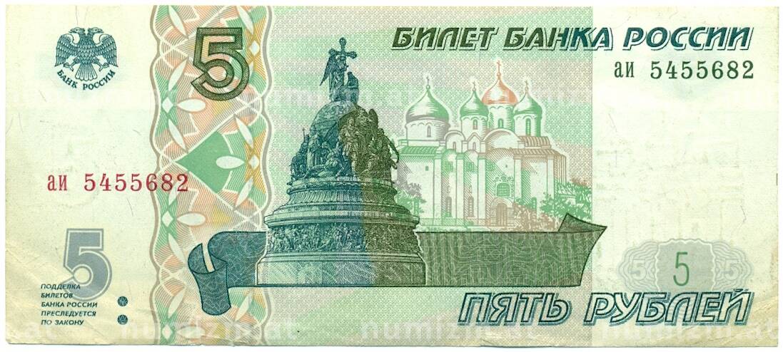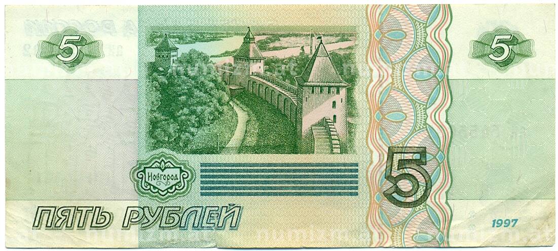 Банкнота 5 рублей 1997 года (Артикул: T11-28739): подробные характеристики, качественные фотографии в высоком разрешении, низкая цена.