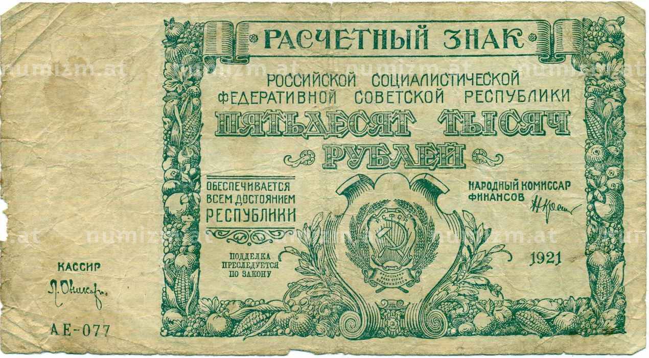 20.01.2025Интернет магазин «Нумизмат» предлагает приобрести 50000 рублей 1921 года.