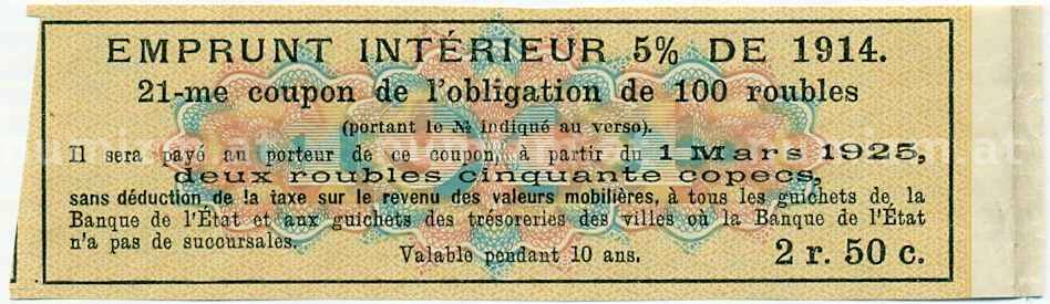 Купить Купон от облигации 100 рублей 1914 года «Внутренний заем» по привлекательной цене можно в нашем интернет-магазине — Вам достаточно оформить заказ на сайте. Все монеты, представленные в каталоге, находятся в наличии на нашем складе.