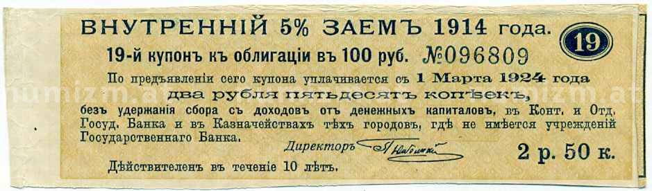 Купон от облигации 100 рублей 1914 года «Внутренний заем» (Артикул: T11-29972): подробные характеристики, качественные фотографии в высоком разрешении, низкая цена.