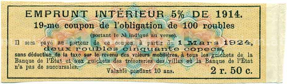 Купон от облигации 100 рублей 1914 года «Внутренний заем» [Артикул: T11-29972]