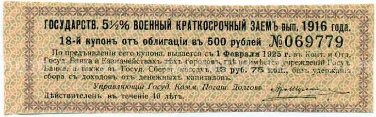 Купить Купон от облигации 500 рублей 1916 года «Внутренний государственный краткосрочный заем» по привлекательной цене можно в нашем интернет-магазине — Вам достаточно оформить заказ на сайте. Все монеты, представленные в каталоге, находятся в наличии на нашем складе.