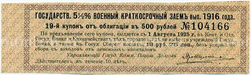 Купон от облигации 500 рублей 1916 года «Внутренний государственный краткосрочный заем» (Артикул: T11-29991): подробные характеристики, качественные фотографии в высоком разрешении, низкая цена.