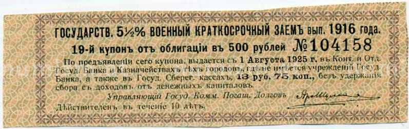 Купон от облигации 500 рублей 1916 года «Внутренний государственный краткосрочный заем» (Артикул: T11-30001): подробные характеристики, качественные фотографии в высоком разрешении, низкая цена.