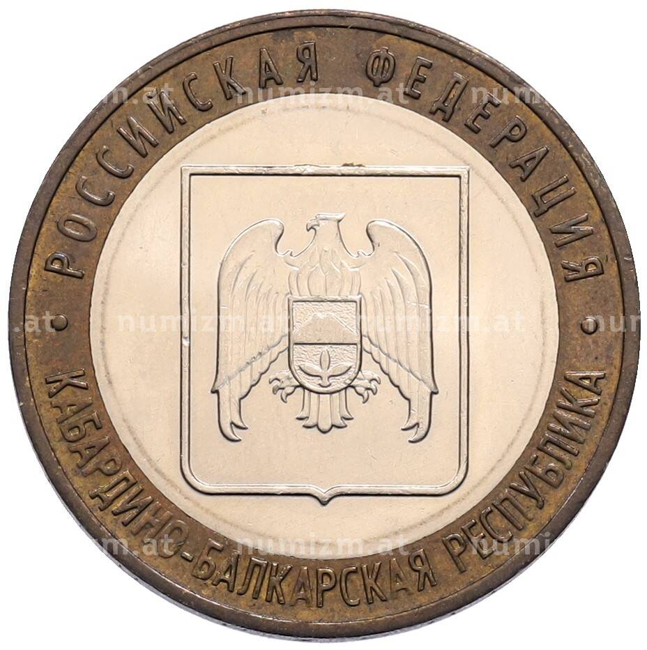 Интернет магазин «Нумизмат» предлагает приобрести 10 рублей 2008 года ММД «Российская Федерация — Кабардино-Балкарская Республика».