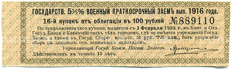 Купон от облигации 100 рублей 1916 года «Государственный военный краткосрочный заем» (Артикул: T11-30269): подробные характеристики, качественные фотографии в высоком разрешении, низкая цена.