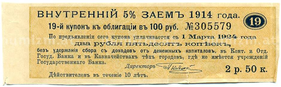 Интернет магазин «Нумизмат» предлагает приобрести Купон от облигации 100 рублей 1914 года «Внутренний заем».